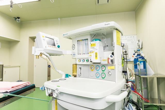 当院での手術は局所麻酔が基本となりますが、めまいを伴う症例や子供の症例では全身麻酔が必要となります。全身麻酔器(GE社)は最新機種を使用し、心電図、血圧、血中酸素濃度、各種呼気ガス濃度などが把握可能です。